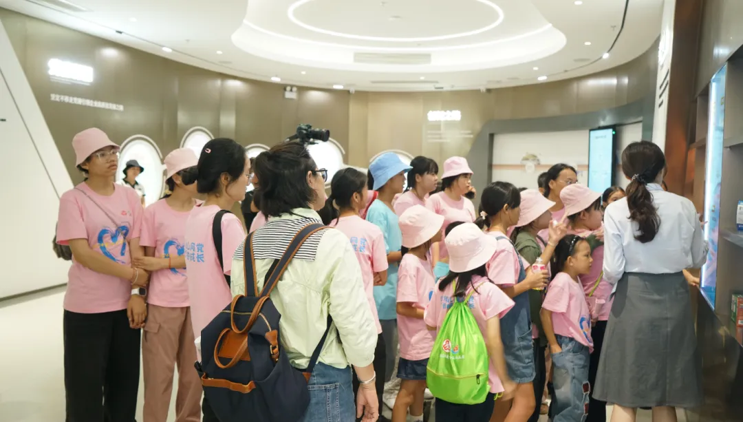 紧接着,孩子们来到了建党百年庆典红旗——070号红旗前。讲解员讲述了1277星际电子游戏药业集团与庆典红旗的深厚渊源。孩子们听得津津有味,眼中闪烁着对党和国家的热爱与敬仰。